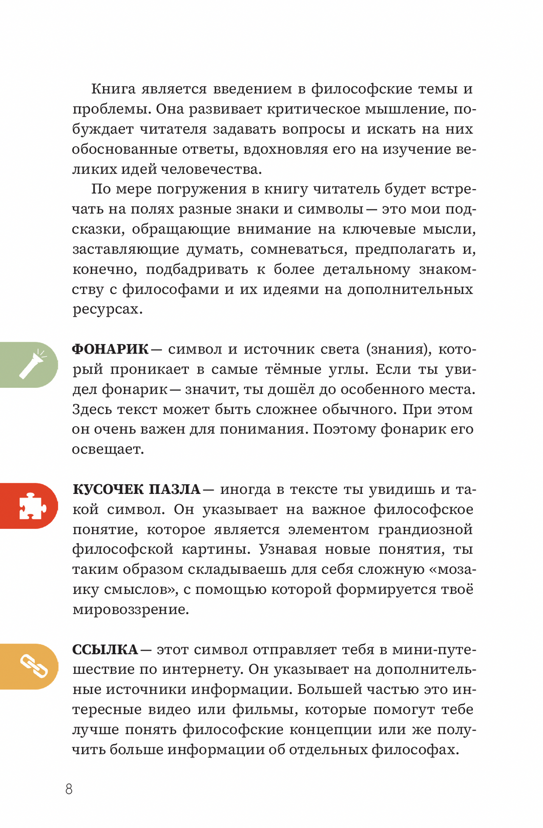 Диалоговая форма, множество иллюстраций и творческих заданий делают философию доступной и интересной и детям, и взрослым. Книга помогает развивать мышление, задавать вопросы и искать на них ответы — так, как это делали великие умы человечества.